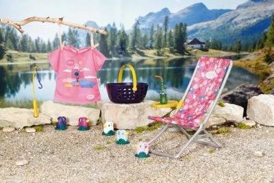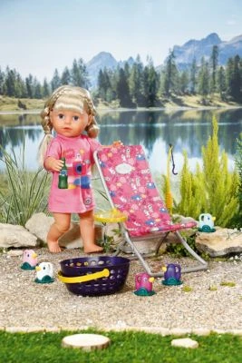 Mit dem BABY born® Weekend Fischen hat die Lieblingspuppe alles, was sie für einen Angelausflug braucht. Im Angler-Outfit macht sie es sich im Liegestuhl bequem und angelt nach den Enten. Auch eine Erfrischung hat sie natürlich dabei.