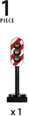 Mit dem oberen Knopf wird die Ampel aktiviert. Das Signal schaltet von Rot über Gelb auf Grün. Ein unverzichtbares Zubehör für die BRIO Bahn.