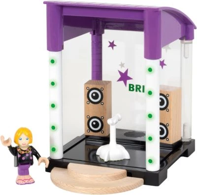 Die Bühne verfügt über Ton- und Lichteffekte. Wenn das Kind das Mikrofon auf die markierte Stelle auf der Bühne stellt, startet die Musik! Einschließlich Mikrofon, Spielfigur und Holzlautsprechern. Die Bühne ist bereits vormontiert und kann mit den anderen Spielsets des BRIO Together-Konzepts kombiniert werden.