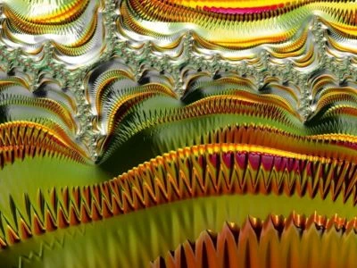 Ein Motiv aus dem Kalender “Fraktale Schönheit 2017” von Shako M. Burkhardt: Grundlage für die Werke dieses Kalenders bilden die von Benoit Mandelbrot entdeckten mathematischen Formeln, deren geometrische Darstellungen heute unter dem Begriff “Fraktale” bekannt sind. Eine ihrer Eigenschaften ist die sogenannte “Selbstähnlichkeit” – Strukturelemente wiederholen sich oft bis ins kleinste Detail und bis ins Unendliche, wobei es allerdings in der Detailgenauigkeit Abweichungen gibt. Hierdurch ergibt sich ein Zusammenhang mit der sogenannten “Chaostheorie”. Fraktale Formgestaltungen findet man vielfach in der Natur. Durch neuartige Texturen, Lichteffekte, Farbspektren, Zufall und Experiment entstehen die hier gezeigten form- und farbenreichen Bildfindungen.