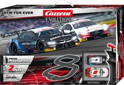 Mit Vollgas zum Sieg! Hier kommt ein cooles Racing-Set für alle Geschwindigkeits-Fans. Das CARRERA EVOLUTION „DTM For Ever“ Racing-Set überzeugt mit tollen Schienenelementen für kurvenreiche Renn-Action mit langen Geraden, steilen Kurven und extra breiten Schienen im Maßstab 1:24. Hier geht es richtig zur Sache. Mit in dem Set enthalten sind zwei originalgetreue Racer für spannende Battles. Das Set beinhaltet zwei Handregler und das Rennen kann direkt starten! Der BMW M4 DTM „B.Spengler, No.7“ und der Audi RS 5 „R.Rast, No.33″ liefern sich ein spannendes Rennen! Wer hat die Nase vorn?