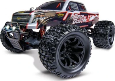 Für rasanten Fahrspaß und coole Offroad-Action bestens ausgestattet: Mit dem ferngesteuerten „Mega Duster FE 2“ von Carson kommt ein Meister für jedes Gelände. Das fahrfertige (RTR) Modell punktet mit voll gefederten High Grip Offroad-Reifen und einer Einzelradaufhängung, die weder vor Hindernissen noch vor Geländevarianten zurückschrecken. Mit einer Spitzengeschwindigkeit von 30 km/h lässt der Duster die Konkurrenz hinter sich. Mit der 2.4GHz Fernbedienung ist eine