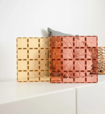 Dieses Paket fördert Kreativität und Vorstellungskraft. Die große Bauplatte mit zahlreichen Magnetpunkten unterstützt den Bau höherer Türme, robusterer Schlösser und Puppenhäuser. Ausserdem inspiriert sie zu verschiedenen Spielformen wie Feinmotorik und Magnetismusforschung (Anbringen von Spielsteinen an jeder Magnetpunkt), symbolisches Spiel (Eis-/Marktstände, Tische und Stühle für Teepartys erstellen), kleines Weltspiel (die Kacheln als Gras, Meer oder Himmel zuordnen) und Labyrinthe, um nur Einige zu nennen.