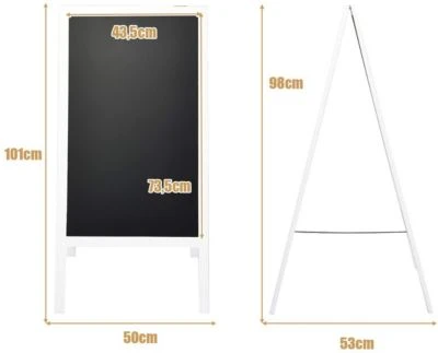 Dieses moderne und freistehende Tafelschild ist die ideale Wahl für Sie, wenn Sie die Aufmerksamkeit Ihrer Kunden gewinnen oder Gäste auf Ihrer Feier willkommen heißen wollen. Die Herstellung aus hochwertigem Kiefernholz, MDF-Platten und Details aus Stahl verleiht diesem Schild eine hohe Stabilität und Robustheit, durch welche es das ganze Jahr über verwendet werden kann. Außerdem bietet Ihnen das freistehende Schild mit seinen zwei Kreidetafeln genug Fläche, um Ihre Illustrationen und Nachrichten auszustellen und die Aufmerksamkeit anderer Menschen zu gewinnen. Die glatte Oberfläche der Tafeln lässt sich problemlos beschreiben und jederzeit schnell wieder reinigen. Sie können das Schild überall verwenden, wie in Ihrem Büro, Zuhause, auf Hochzeiten, im Restaurant etc. Wenn Sie nach einer aufklappbaren Kreidetafel suchen, verpassen Sie nicht dieses freistehende Schild!