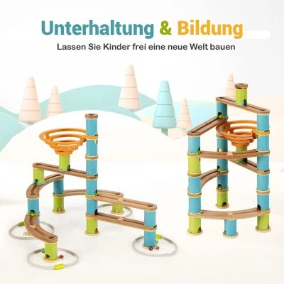 Unser 106-teiliges Bambus-Murmelbahn-Set ist die ideale Wahl für Kinder zum Erkunden, Spielen und Gestalten. Es eignet sich nicht nur für die Eltern-Kind-Interaktion, sondern ist auch ideal, um die frühen technischen Fähigkeiten und das dreidimensionale Denkvermögen von Kindern zu fördern.