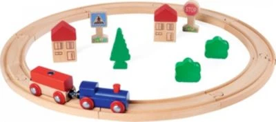 Mit diesem umfangreichen „Bahnset Kreis” von Eichhorn lassen sich tolle und kreative Zug-Spiele ausdenken und umsetzen. Die Schienen können beliebig zu verschiedenen Strecken verbaut werden, auf denen der kleine Holz-Zug seine Runden drehen kann. Der 3-teilige Zug kann seine Runden um das Haus und den Baum drehen – oh da steht ein Signal. Muss der Zug stehenbleiben? Mit diesem Set kommt kreativer SpielespaĂź fĂĽr alle Eisenbahn-Freund*innen.