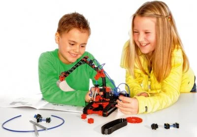 Der preisgünstige Baukasten Pneumatic Power vermittelt spielerisch die Grundlagen der Pneumatik und zeigt anhand von realitätsnahen Modellen die Funktionsweise von Pneumatikventilen und –zylindern. Die Luft wird manuell in einen Luftspeicher gepumpt. Durch das Betätigen der Handventile gelangt die Druckluft über die Schläuche in die Pneumatikzylinder. Neben einem Bagger können vier weitere Modelle gebaut werden. Die didaktische Begleitinformation zum Thema Pneumatik ist für die jungen Tüftler online erhältlich.