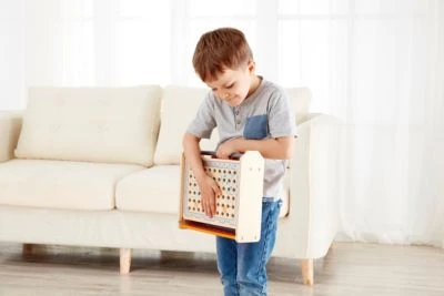 Hape E3029 Tüftler Werkzeugkasten, MINT-Spielzeug, Experimentierset, Junior Inventor – Erfinden und Experimentieren