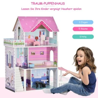 Machen Sie sich immer noch Sorgen, dass Sie kein passendes Geschenk für Ihr Kind finden? Dieses Puppenhaus kann Ihnen vielleicht helfen. Das reiche Strukturdesign mit eigenem Innenhof, schöne Farben, abgestimmt mit reichlich Accessoires, es ist leicht, die Aufmerksamkeit der Kinder auf sich zu ziehen. Während sie den Spaß an diesem Puppenhaus genießen, kann die Intelligenz der Kinder entwickelt, ihre praktischen Fähigkeiten verbessert und ihre Phantasie bereichert werden. Gleichzeitig können sich auch die Eltern einbringen und eine gute Eltern-Kind-Zeit mit ihren Kindern genießen. Ihr Kauf lohnt sich einfach!