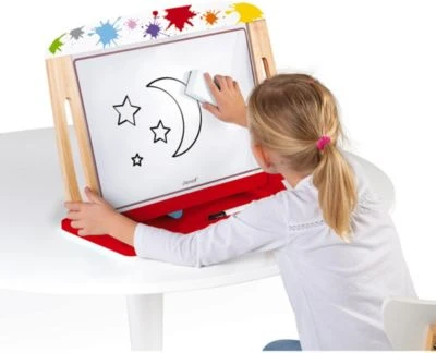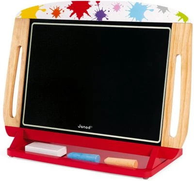 Janod J09633 Beidseitig nutzbare Tischtafel aus Holz Splash-Große Fläche-Magnetisches Whiteboard + Schiefertafel für Kreide-4 Zubehör enthalten-Ab 3 Jahren