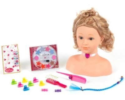Dieser wunderschöne Schmink- und Frisierkopf mit freundlichem Gesichtsausdruck und seidigen goldenen Haaren eignet sich für alle ersten Stylingversuche. Das Haar kann leicht gewaschen und mit Bürste und Kamm schön hergerichtet werden. Mit einem dermatologisch getesteten Schminkset, dem vielteiligen Haarperlen-Set, der blauen Haarsträhne und den verschiedenen Spangen und Klammern wird Coralie zur hübschen Prinzessin, zum glamourösen Filmstar, zur coolen Popsängerin und vielem anderen. Der Kreativität sind keine Grenzen gesetzt.