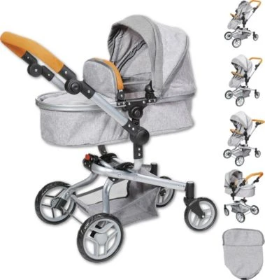 Ein stylischer Begleiter für den nächsten Ausflug zum Spielplatz ist der moderne und praktische Puppenwagen „Boonk“ von KNORRTOYS. Das Kombi-Modell lässt sich super schnell zu einem Sportbuggy umbauen und begeistert mit dem verstellbaren Verdeck sowie dem großen Einkaufsnetz, das genug Platz für alle möglichen Puppenutensilien bietet. Der höhenverstellbare Schieber ist mit einer Softummantelung ausgestattet und ermöglicht zusammen mit den schwenkbaren Vorderrädern ein komfortables Lenken des Wagens. Damit die Puppe oder das Stofftier beim Fahren nicht aus dem Wagen fällt, sorgt der Anschnallgurt für den nötigen Halt.
