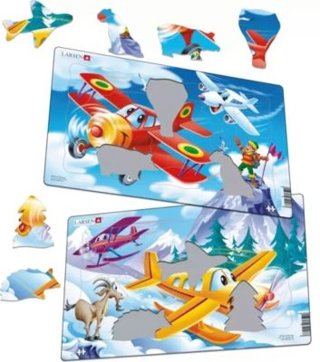 2er-Set Rahmen-Puzzle, 13 Teile, 28×18 cm, Flugzeug von Larsen