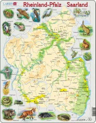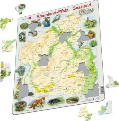 Rahmen-Puzzle, 66 Teile, 36×28 cm, Karte Rheinland-Pfalz / Saarland (physisch) von Larsen