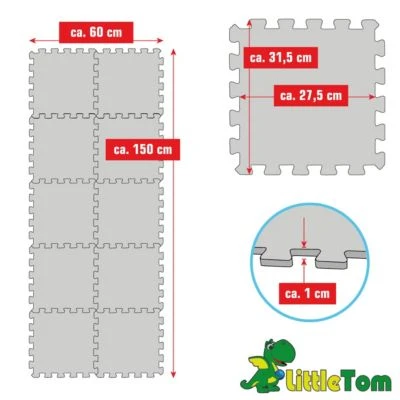 Das ca. 1 cm dicke Schaumstoff Puzzle ist extra isolierend – ideal zum Spielen auf kalten und harten Böden .