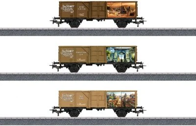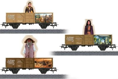 Wagen-Set bestehend aus 3 offenen Güterwagen zum Thema “Jim Knopf und Lukas der Lokomotivführer”.