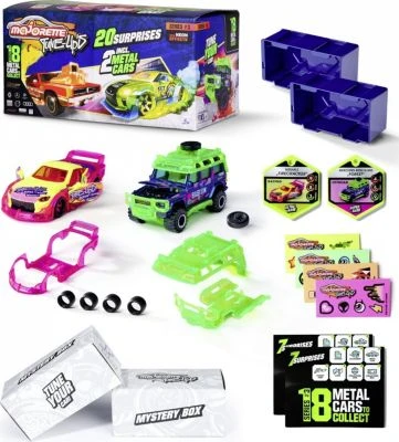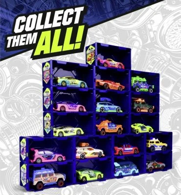 Für alle Fans cooler Autos kommt hier perfekter Spiel- und Sammelspaß! Mit dem Set kommen zwei Die-Cast Autos mit coolem Neoneffekt, Stickerbögen, Anbauteile zum Tunen, Zubehör-Teile, Chips zum Sammeln, Flyer und Stapelboxen. Mit den 20 Überraschungen heißt es für alle Tuning-Fans jetzt: ran an die Teile! Die Serie 3 besteht aus insgesamt 18 verschiedenen Spielzeugautos. Darunter 8 Fahrzeuge mit knalligen Lackierungen und Neon-Aufklebern, 6 Fahrzeuge mit spezieller Lackierung und Neon-Bodykit, 3 Fahrzeuge mit spezieller Lackierung, Bodykit und Neon-Zubehör und 1 Fahrzeug mit Neon-Lackierung, Bodykit und Extra-Ausstattung. Die realitätsgetreuen und original lizensierten Modelle bekannter Automarken, wie Dodge, Volkswagen, Volvo, Ford, Mercedes-Benz, Toyota, Renault, Audi und Nissan, sind besonders hochwertig und widerstandsfähig. Die kleinen Spielzeugautos aus Metall sind ideal zum Spielen und für ambitionierte Sammler*innen.