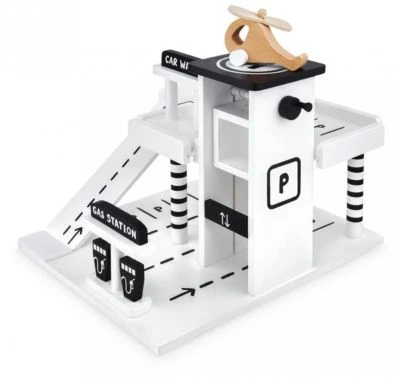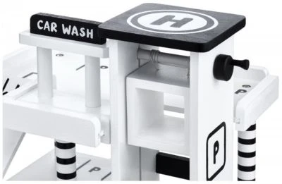 • Auf dem Parkhaus haben wir auch einen Landeplatz, eine Waschanlage und eine Tankstelle