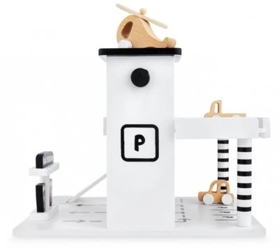 Holzgarage – Parkhaus – Autos, Aufzug, Hubschrauber