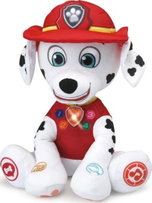 Zusammen mit Marshall spannende Geschichten lesen! Der plüschige Marshall liest vier PAW Patrol Abenteuergeschichten vor und ermutigt das Kind zum eigenständigen Lesen.
