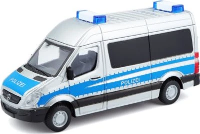 Die Einsatzfahrzeuge von Bburago sind bereit für jeden Einsatz. Egal zu welchem Problem er gerufen wird, der Mercedes Sprinter bewältigt es problemlos. Bburago hat das Polizeiauto originalgetreu und detailverliebt nachgebildet. Das Spielzeugfahrzeug aus Metallspritzguss mit einer Länge von ca. 12 cm eignet sich als Spielzeug für Kinder ab 3 Jahren.