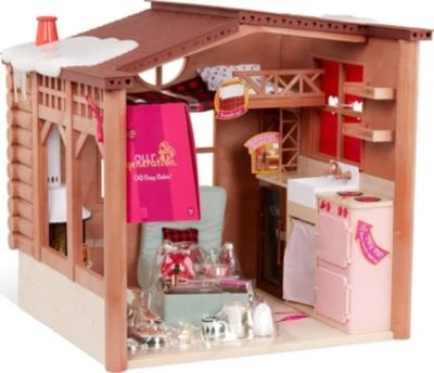 Der Winter kann kommen! In dieser gemütlichen Hütte von Our Generation können deine Puppen ganz entspannt ihre Ferien verbringen und zusammen Spaß haben. Wer möchte etwas Leckeres zu essen oder einen heißen Kakao? Gar kein Problem mit dem eingebauten Herd! Nach dem Essen könnt ihr das Geschirr wieder ins Regal räumen und die Milch in den Kühlschrank zurückstellen. Wie wäre es, wenn ihr jetzt noch Marshmallows röstet? Macht es euch vor dem Kaminofen gemütlich und genießt das Geräusch des prasselnden Feuers. Vielleicht kennt jemand von euch eine schöne Gutenachtgeschichte, bevor ihr ins Bett geht und euch unter die gemütliche Decke kuschelt? Und wenn ihr dann am nächsten Morgen aufwacht und die Fensterläden öffnet, liegt sogar ein wenig Schnee auf dem Dach!