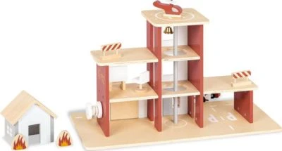 Tatüü tataa die Feuerwehr ist da! Wenn in der großen Feuerwache ein Notruf eingeht, machen sich alle sofort bereit. Krankenwagen, Hubschrauber und Feuerwehrfahrzeug sind immer startklar. Der Hubschrauber kann auf dem Landeplatz abgestellt werden und für die Fahrzeuge steht eine Garage zur Verfügung. Die Verarbeitung aus Holz macht die Feuerwache „Ben“ zu einem langlebigen Begleiter und auch die vielen Zubehörteile bieten kreativen und immer wieder neuen Spielespaß.