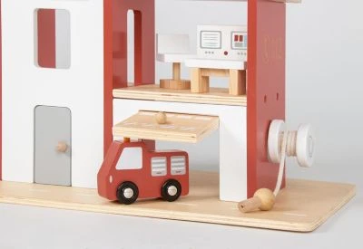 – Feuerwache mit Garage, Rutschstange und abrollbarem Schlauch