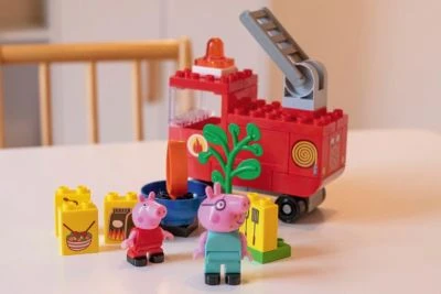 Die kleine Peppa Wutz erlebt jeden Tag ein spannendes neues Abenteuer. Mit Hilfe dieses Sets aus der BIG-Bloxx-Reihe kann sie ihren ersten Einsatz als Feuerwehrfrau erleben. Papa Wutz wollte nur ein leckeres Essen für die Familie grillen, aber dabei sind die Flammen außer Kontrolle geraten. Zum Glück lässt sich schnell das Feuerwehrauto zusammenbauen, damit der Brand gelöscht werden kann.