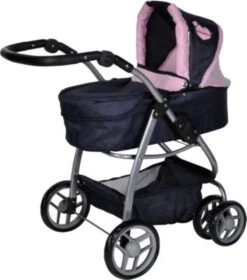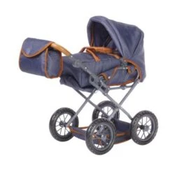 TinaForKids Puppenwagen Mit Bettwäscheset Aus Weiden Und Holz, Altrosa/Natur