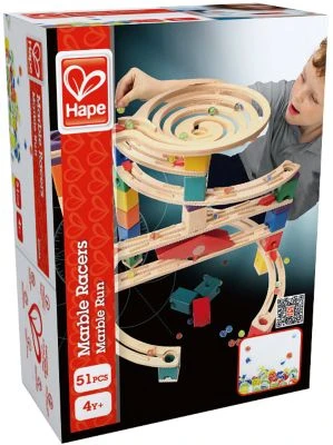 Das Hape Murmel-Set bietet noch mehr SpielspaĂź fĂĽrs Kind.