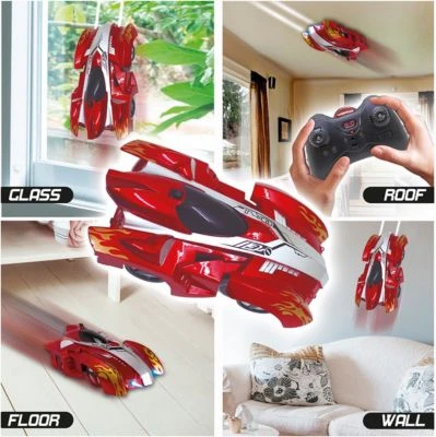 Auf den ersten Blick sieht das Flash Car® wie ein ganz gewöhnliches IR Modellauto aus, das ferngesteuert auf dem Boden fährt. Allerdings kann man damit an beinahe allen glatten und senkrechten Flächen wie Wänden, Fenstern, Spiegeln, Möbeln usw. hochfahren! Das Flash Car® fährt sogar „kopfüber“ an der Decke entlang! Ein Riesenspaß für die ganze Familie, denn es können bis zu drei Autos gleichzeitig betrieben werden!
