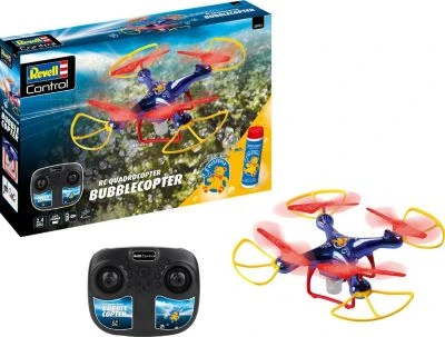 Wow- Seifenblasen-Alarm! Mit diesem coolen ferngesteuerten RC Quadrocopter Bubblecopter Pustefix mit Seifenblasenfunktion von Revell kommt die perfekte Drohne als Party-Starter. Mit der 4-Kanal Fernsteuerung lässt sich die Drohne störungsfrei und leicht steuern. Im Flug produziert der Bubblecopter Seifenblasen und ist damit ein Hingucker und Party-Kracher. Mit dabei ist eine Dose PUSTEFIX mit der im Flug auf Knopfdruck Seifenblasen erzeugt werden. Und dann heißt es: Auf die Plätze, fertig, BUBBLE!