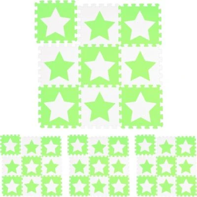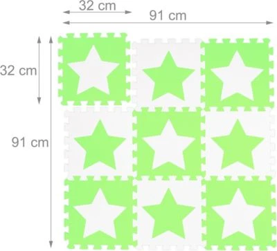 • Kariert: 72-tlg. Bodenpuzzle Set mit Sternen in Weiß und Grün – Je Matte HxBxT: ca. 1 x 32 x 32 cm