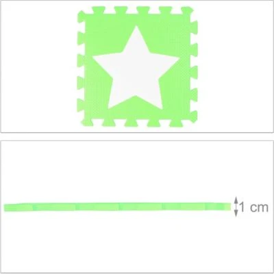 Spielspaß für die Kleinen garantiert der weiche Kinderspielteppich mit Stern-Motiv zum Puzzeln. Die flexibel zusammensetzbare Spielunterlage besteht aus 36 EVA-Schaumstoffmatten. Die bequeme Krabbelmatte ist eine stoßdämpfende Unterlage für Babys und Kinder. Die zweifarbigen Matten sind pflegeleicht und schadstofffrei. Die herausnehmbaren Sterne bieten besonders Kleinkindern ein haptisches Erlebnis. Säuglingen bietet die Babymatte einen griffigen Untergrund für erste Krabbelversuche.