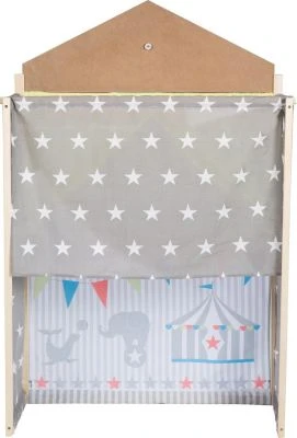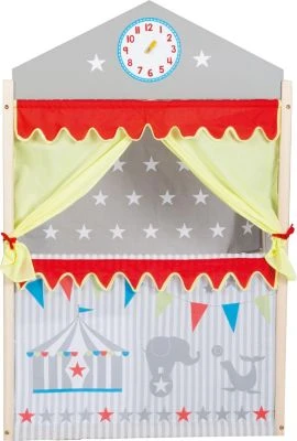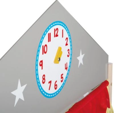 Vorhang auf! Für alle kleinen Theater-Liebhaber*innen kommt hier die passende Bühne! Mit dem freistehenden Kasperletheater von Roba können tolle und kreative Theater-Vorstellungen umgesetzt und Geschichten erzählt werden. Das Theater punktet mit liebevollen und dekorativen Elementen rund um den stabilen Holzrahmen und einem Vorhang für die großen Auftritte. Außerdem ist das Theater mit einer Uhr ausgestattet, die den Termin der nächsten Vorstellung anzeigt. Die Vorhänge können zur Seite gezogen und fixiert werden und dann heißt es: Bühne frei. Wer wird heute im Publikum sitzen? Das Roba Standtheater lädt zu tollen Rollenspielen ein und überzeugt mit seiner langlebigen Qualität.