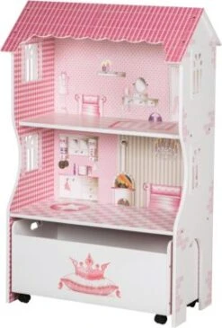 Ein Puppenhochstuhl erlaubt es Puppen am Kindertisch direkt neben der Puppenmama zu sitzen. So kann sie mit dem Puppenliebling spielen und ihn füttern wie ein echtes Baby. Dank eines weichen Kissens sitzt die Puppe gemütlich und ein Stab unter dem Tablett verhindert, dass sie herausrutscht. Für alle Mutter-Kind-Rollenspiele ist das schöne Möbelstück mit königlicher Verzierung darum besonders gut geeignet.