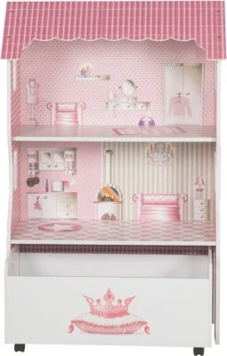 Die Roba Puppenvilla verbindet einen beliebten Spieleklassiker mit einem praktischen Möbelstück. Auf zwei Etagen können kleine Puppenmütter- und Väter ihren Puppen einen tollen Wohnbereich errichten. Zusätzlichen Stauraum bietet die integrierte Schublage. Durch die liebevolle Gestaltung ist das Puppenhaus zudem eine tolle, dekorative Ergänzung für das Kinderzimmer.