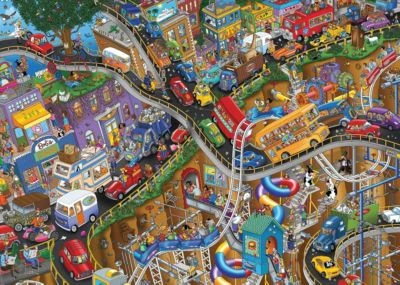 Für leidenschaftliche Puzzleprofis und solche, die es gerne werden wollen. Gleich 1000 Teile müssen bei diesem Puzzle von Schmidt Spiele zusammengesetzt werden. Gar nicht so einfach bei einem so detailreichen Motiv. Auf dem Bild gibt es einiges zu entdecken. Nach dem Puzzlen kann neugierig geschaut werden auf das bunte Treiben in der Stadt.