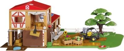 Auf einem Bauernhof ist immer etwas los und es gibt immer etwas zu tun. Die Heuballen werden mit dem Kran auf den Heuboden gehievt. Vor dem Haus steht der John Deere Gator mit Milchkannen, die zur Milchverladestation zu bringen sind. Aus dem Stall schauen zwei Kühe schon neugierig hervor und warten, dass die Futtertröge aufgefüllt werden: Mit dem SIKUWORLD Bauernhof wird das Landleben zur Spielwelt. Der SIKUWORLD Bauernhof ist kompatibel mit den anderen Sets der SIKUWORLD, ist aber auch allein bespielbar. Der Bauernhof ist die ideale Ergänzung zum Pferdehof und dem Set Feldwege und Wald. Das zweigeschossige Gebäude kann nach der anschaulich bebilderten Anleitung zusammengesteckt werden. Aus den Bauelementen entstehen auch ganz individuelle Gebäude in L- oder U-Form oder wachsen zu einem mehrgeschossigen Gebäude empor. Der modulare Aufbau und die Stabilität des Stecksystems setzen der Kreativität der Kinder keine Grenzen. Das siku Stecksystem fördert dabei spielerisch die motorischen und kognitiven Fähigkeiten des Kindes. Die Möglichkeit, ohne Hilfe von Erwachsenen etwas zu erschaffen, stärkt zudem das Selbstbewusstsein.Der Bauernhof mit Scheune, Stall und Lagerboden ist mit der siku-eigenen Detailliertheit ausgestattet. Die beiden Schiebetore der Scheune lassen sich genauso bewegen wie der Lastenkran im Lagerboden. Mit den zwei Pflanzkästen, dem mächtigen Baum mit großem Blätterdach und Zaunelementen kann der Hof gestaltet werden. Epnthalten ist bereits der John Deere Gator. Natürlich lässt sich das Set mit den vielen siku Traktoren, Anhängern und Anbaugeräten ergänzen.