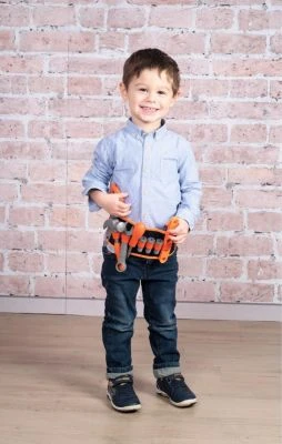 Der Werkzeuggürtel Black+Decker von Smoby macht aus dem Nachwuchs im Nu kleine Heimwerker. Der verstellbare Werkzeug-Gürtel ist mit verschiedenen Black+Decker Werkzeugen ausgestattet. Werkzeuggürtel Black+Decker von Smoby inkl. Zimmermanns-Hammer, Schraubendreher, Säge und Schraubschlüssel, 3 Schrauben, Maßband, kleiner Tasche mit Klettverschluss Gürtel aus Textil, Werkzeug aus robustem Kunststoff ab 3 Jahren geeignet Mit dem praktischen Werkzeuggürtel Black+Decker imitieren Nachwuchs-Heimwerker ihre Eltern beim Handwerken. Der Werkzeuggürtel ist verstellbar und so an das Wachstum anpassbar. Er ist mit verschiedenen Black+Decker Werkzeugen ausgestattet, die von einem robusten Gummiband festgehalten werden. So stehen dem Handwerkernachwuchs ein Zimmermannshammer, ein Schraubendreher, ein Schraubschlüssel, eine Säge, Schrauben und ein Maßband zur Verfügung. Der Gürtel enthält auch eine Tasche mit Klettverschluss für kleine Accessoires. Die Spielzeuge verbessern die Hand-Auge-Koordination. Das Set ist für Kinder ab drei Jahren geeignet.