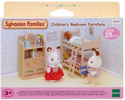 In diesem Kinderzimmer haben gleich zwei Geschwister Platz. Je nach Größe des Hauses können die Betten mit dem hübsch karierten Bettzeug neben- oder übereinander gestellt werden. Natürlich hat jedes Geschwisterkind auch seinen eigenen Teddy. Das hübsche Regal mit Schubfächern ist mit vielen Zubehörteilen gefüllt. Bücher, Hefte und Stifte sowie ein Stundenplan an der Wand machen die kleine Welt der Sylvanian Families noch realistischer. Bei den spielenden Kindern werden hier viele Ideen angeregt werden, die von ihrem eigenen Alltag inspiriert wurden.
