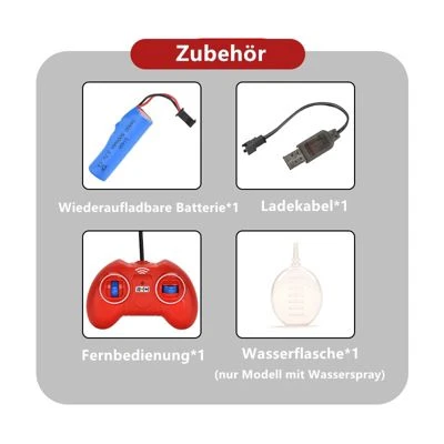 Akku*1, Ladekabel*1, Fernbedienung*1, Wasserflasche I (nur für Wassersprühmodelle)*1
