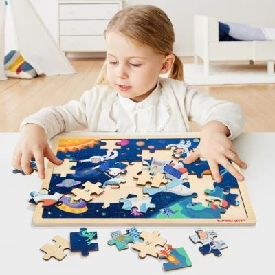 Das Holz Puzzle – Weltraum von TOPBRIGHT mit 24 Teilen ist perfekt für Kinderhände geeignet. Dank der innovativen Schnitttechnik sind die Ecken und Kanten abgerundet und lassen sich ganz einfach greifen. Es ist ideal für Puzzle-Einsteiger: Nummern auf der Rückseite und das komplette Bild abgebildet zum Nachbauen auf der Verpackung helfen Kinder dabei, das Puzzle allein zu lösen.