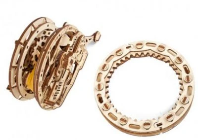 Die Mechanismusteile imitieren einen echten Dampfmotor. Das Fehlen einer Außenhülle gewährt einfachen Zugang zu Gummibändern, wenn Sie welche ersetzen müssen. Zwei Arbeitsmodi garantieren noch mehr Spaß. Modus eins mit den gesperrten Füßen gibt Ihnen ununterbrochenes Geradeausrollen für etwa 1,5-2 Meter, bis die Ressource des Gummibandmotors vollständig freigegeben ist. Danach dreht sich das Modell anmutig um und stoppt. Der zweite Modus mit den Füßen in der entriegelten Position wird Ihr Monorad vorrollen, während der Gummibandmotor arbeitet. Danach dreht es sich um, seine Füße verstecken sich im inneren und das Modell rollt weiter, bis es in ein Hindernis läuft. In diesem Modus kann das Modell bis zu 5 Meter abdecken, was uns inspiriert hat, mit unserem neuen Modell als Bowlingkugel mechanisches Bowling zu spielen. Wir empfehlen diese neue Sportart allen unseren Freunden!
