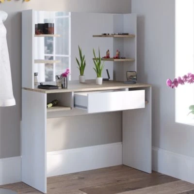 • Unser Schminktisch Daenerys bietet durch die Melaminharzbeschichtung eine kratzfeste und pflegeleichte Oberfläche.