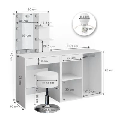 Schminktisch: 60 x 140 x 40 cm (BxHxT)