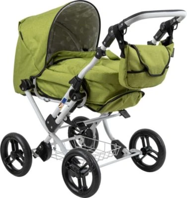 Der Kombi-Puppenwagen Zeki Premium von Zekiwa sieht fast wie ein echtes Modell aus. Er wird mit einer kleinen Anhängetasche für Puppenzubehör sowie einer Tragetasche für die Puppe geliefert. Diese Tragetasche lässt sich spielend leicht in den Puppenwagen setzen und dient dann als Fußsack. Wie bei den echten Vorbildern lässt sich auch beim Zeki Premium das Sonnenverdeck zurückklappen. Besonders praktisch: Nach dem Spielen lässt sich der Kombipuppenwagen zusammenklappen und platzsparend verstauen.